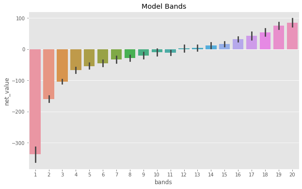 这里需要注意的是,有些模型波段的净值是超负的,而也有一些波段的净值非常正。此外,有些波段我们不知道净值是负数还是正数。最后,注意它们如何从左到右呈上升趋势。由于我们预测的是净收入,因此预测值将与被预测对象的实际值成正比。