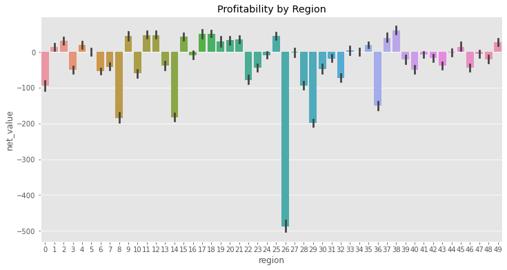 而且,可悲的是,没有。然而,所有收入水平的平均净值均为负数。虽然富裕客户确实比非富裕客户”不那么糟糕”,但平均而言,他们仍然会产生负净值。所以收入在这里对我们没有多大帮助,但是其他变量呢,比如地区呢?如果我们的大部分成本来自不得不在遥远的地方为客户服务,我们应该期望该地区将有利可图的客户与无利可图的客户区分开来。