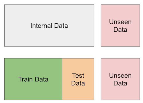 我们将假装我们无法访问部分数据。这个想法是将我们拥有基本事实的数据集一分为二。然后,我们可以为模型提供一个用于训练的部分,另一个部分可用于验证模型预测。这称为交叉验证。