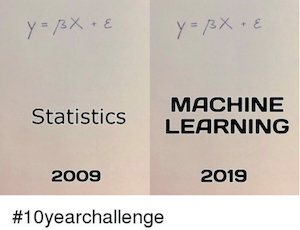 如果你更喜欢技术符号,那么理解机器学习的另一种方法是估计条件期望\(E[Y|X]\),其中 \(Y\) 称为目标变量或结果,\(X\) 称为特征变量。ML 只是获取\(\hat{E}[Y|X]\)的一种强大方式,通常通过优化一些错误或损失函数来实现。